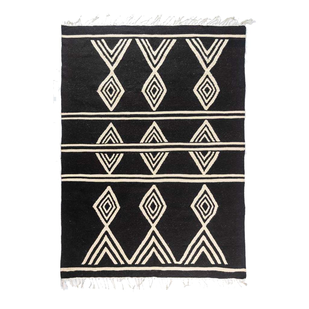 سجاد كليم مودرن من الصوف النيوزيلاندي و القطن المصري اللون: أبيض وأسود الخامة: صوف علي قطن العرض (سم): 100 الطول