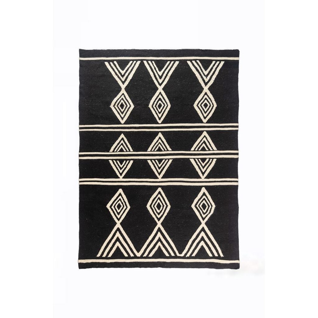 سجادة جويلا صوف وقطن أبيض وأسود – 200 × 150 سم