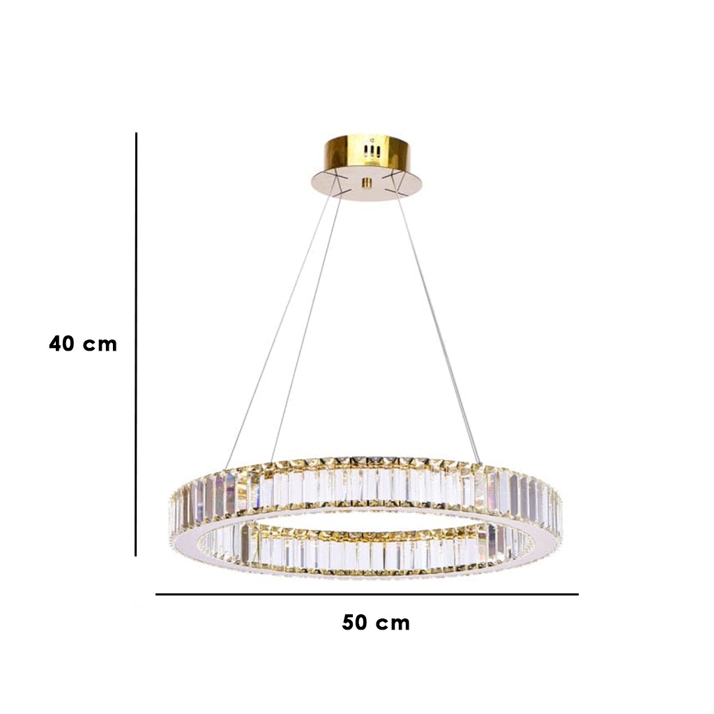 الخامة: استانليس وكريستال اللون: دهبي نوع الإضاءة: ليد نوع الطلاء: اليكتروستتيك يتضمن اللمبات ( نعم/ لا ): نعم نوع اللمبة: