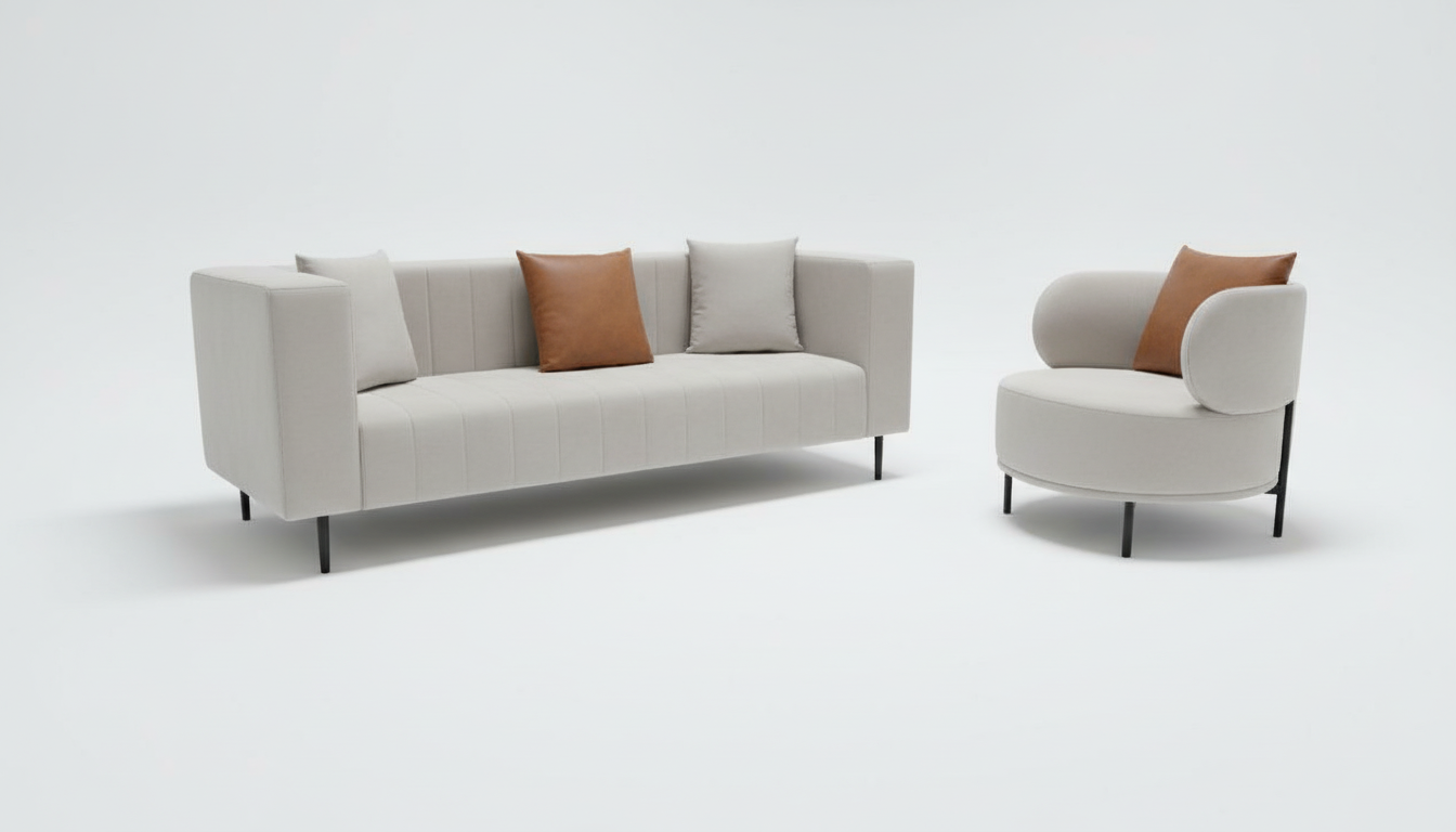 Beech Wood And Venetian Leather Living Room Set, 2 Pieces – Beige