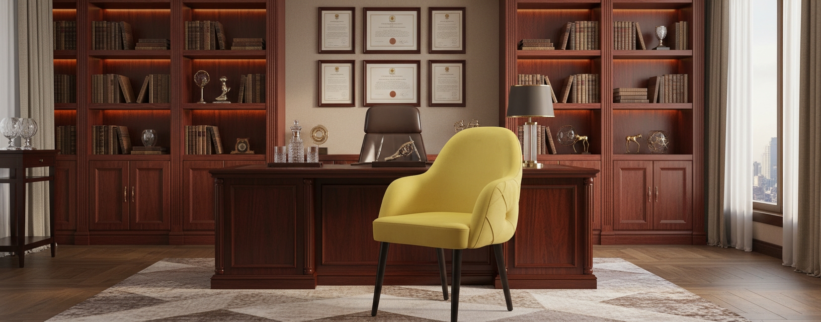- This chair is not merely a seat, but an extension of the spirit of leadership, meticulously designed to provide absolute support during long working hours. It is the perfect complement to the office’s luxury.