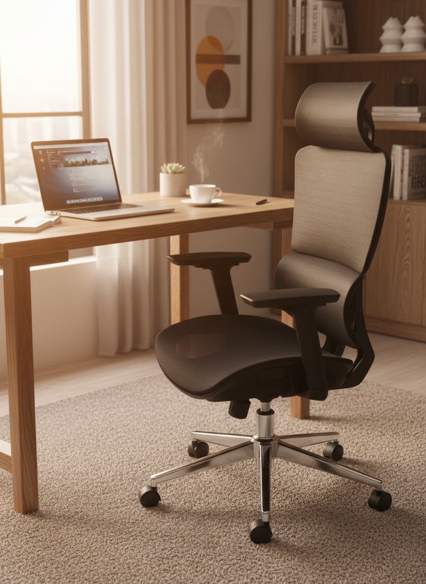 • The chair masterfully blends the elegance of modern design with the intelligence of human engineering (ergonomics), ensuring that every decision is made in a state of peak comfort and concentration.