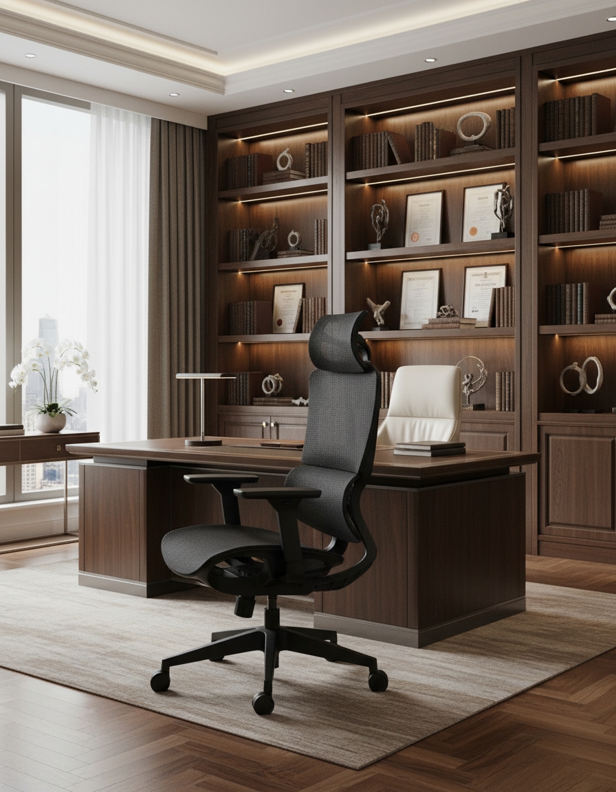 - The chair masterfully blends the elegance of modern design with the intelligence of human engineering (ergonomics), ensuring that every decision is made in a state of peak comfort and concentration.
