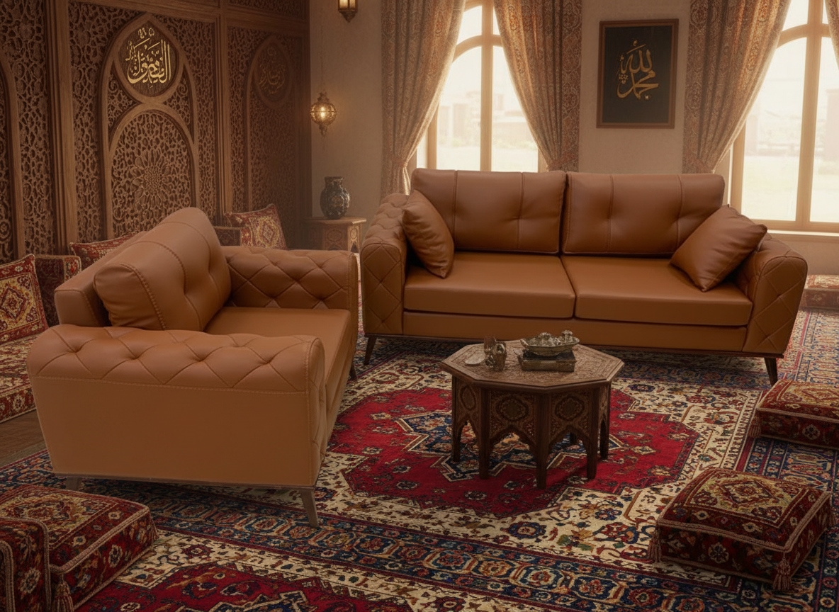 - ارتقِ بمستوى أناقة غرفة المعيشة إلى قمة الفخامة مع هذا الطقم المصمم ليجسد التناغم المثالي بين جمال الطبيعة وجودة الحِرفية.