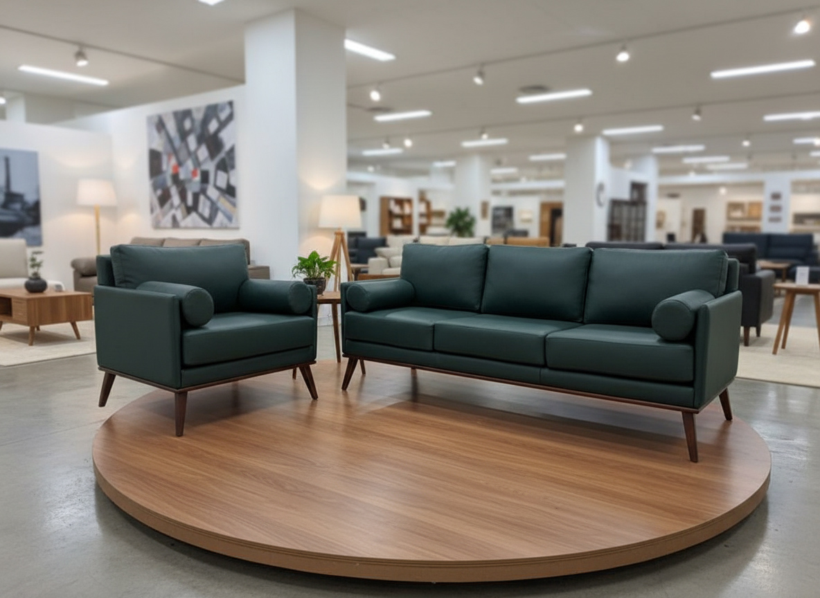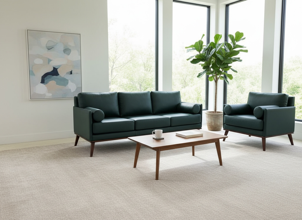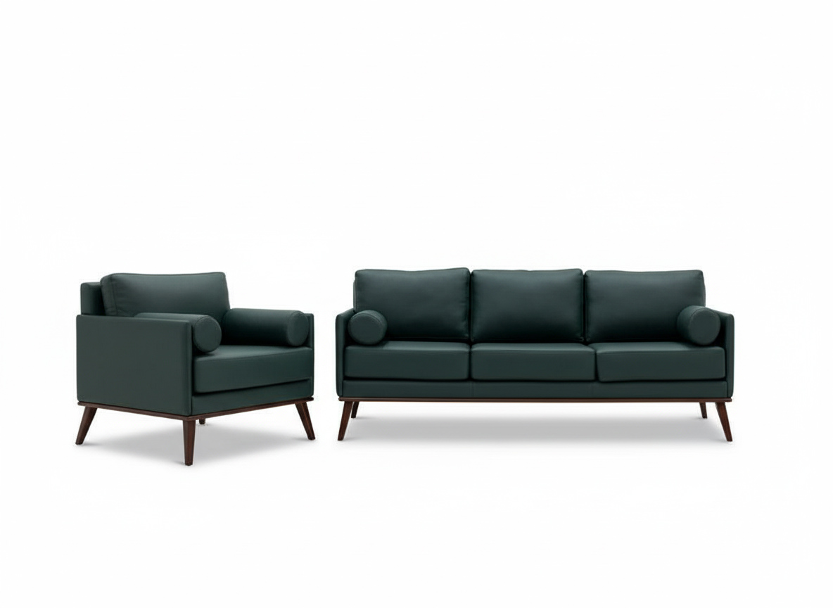 طقم انتريه خشب زان وجلد فينيسيا، قطعتين – زيتونى