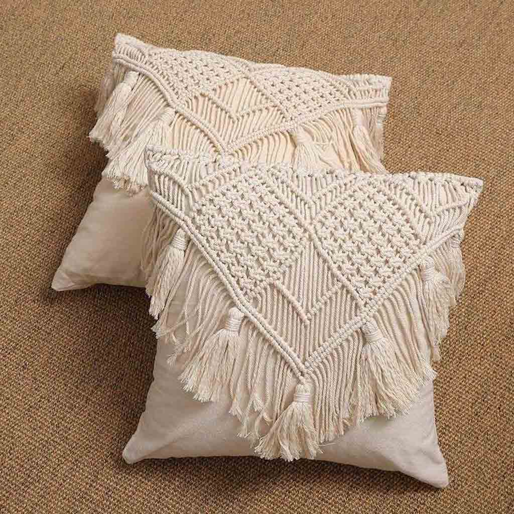 طقم وسائد ديكور كتان وخيوط مكرميه اوف وايت – 40×40 سم