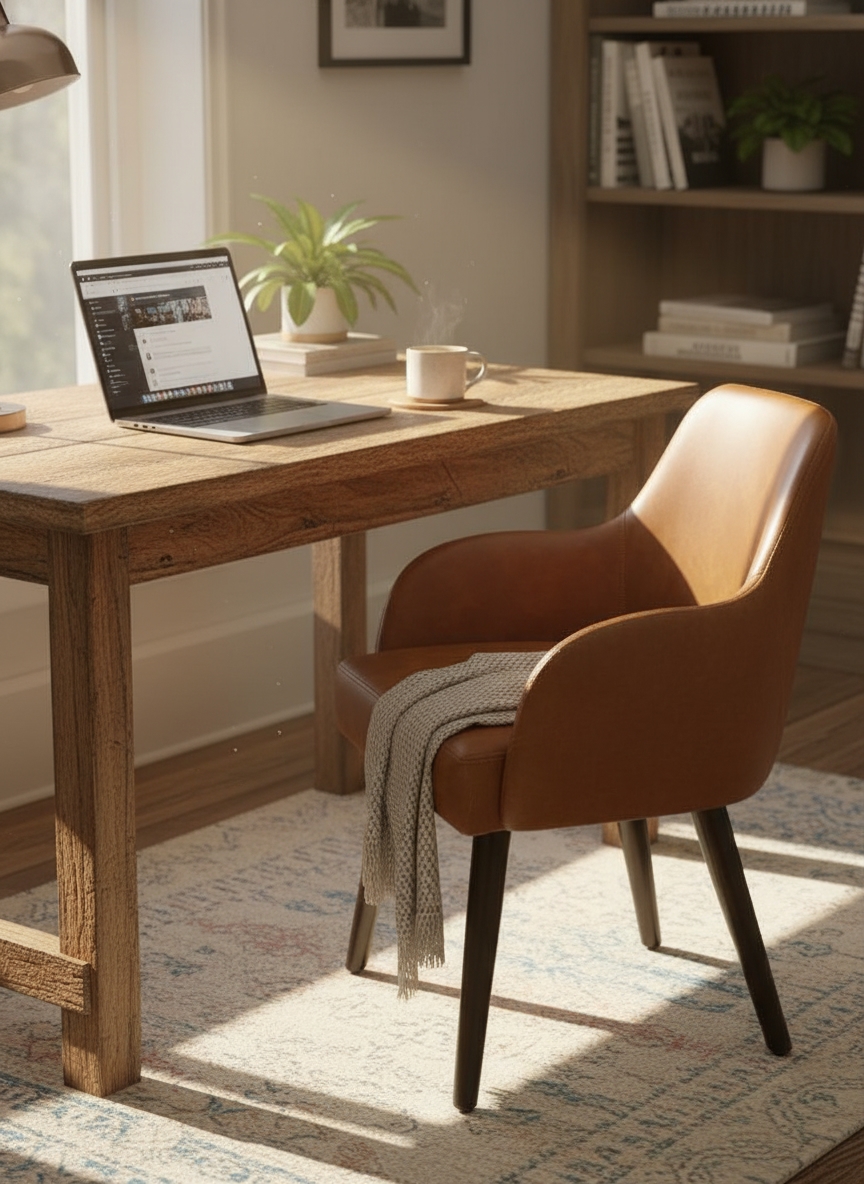 كرسي مكتب جلد، 55 ×90 ×55 سم – بني