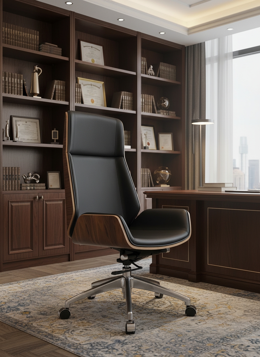 - هذا الكرسي ليس مجرد مقعد، بل هو امتداد لروح القيادة ومصمم لتوفير الدعم المطلق لأوقات العمل الطويلة. إنه يكمل فخامة المكتب.