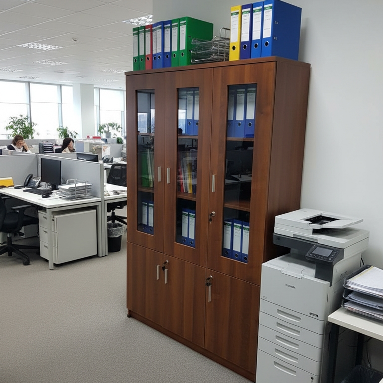 - صُمم هذا الدولاب ليكون الحل الأمثل لتنظيم ملفاتك ومستنداتك بأناقة تامة، مانحاً مساحة عملك شعوراً بالهدوء والكفاءة.