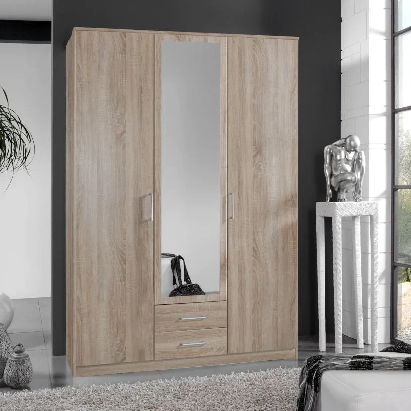 دولاب خشب ام دي اف 3 ضلف، 200×120×50 سم – بيج