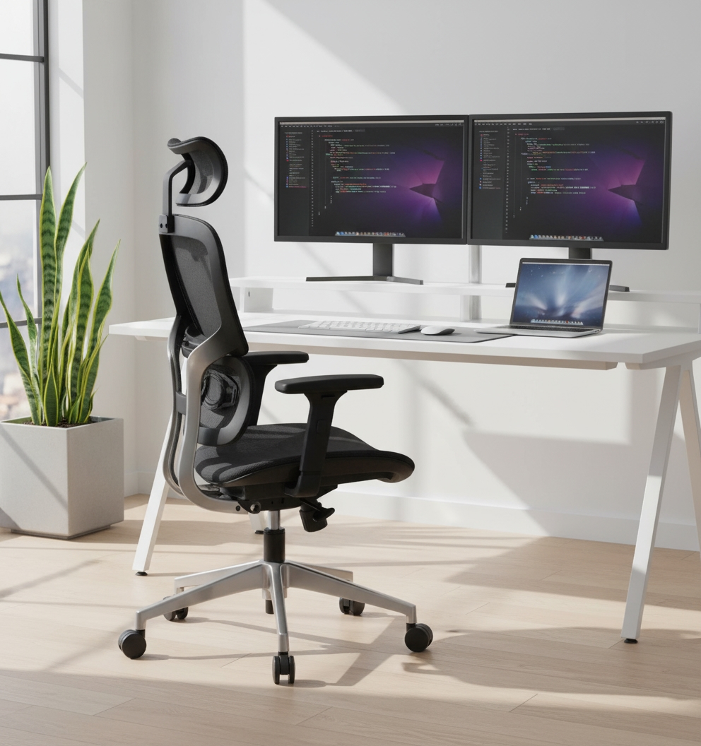 - الكرسي يجمع بين أناقة التصميم المودرن وذكاء الهندسة البشرية، لضمان أن كل قرار يُتخذ يكون في قمة الراحة والتركيز.