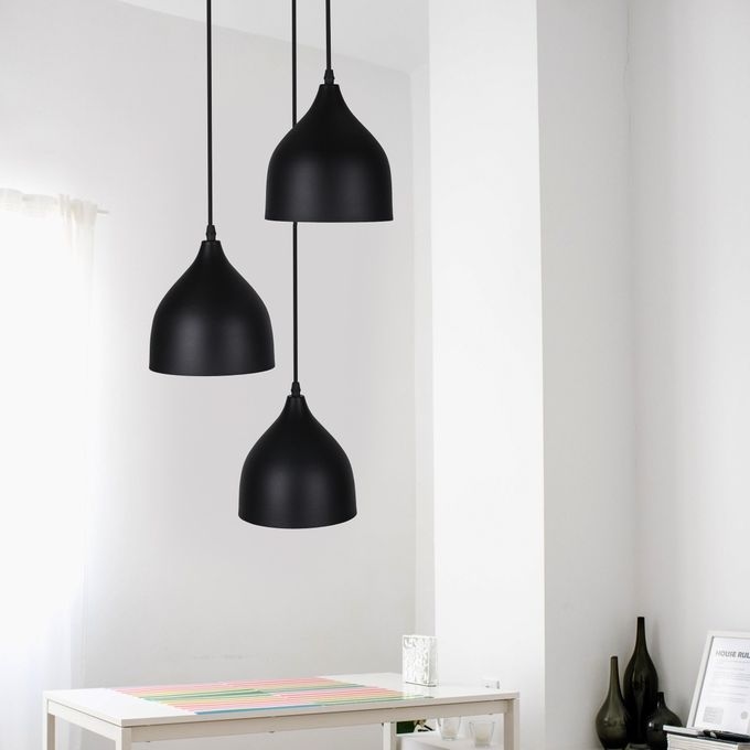 نجفة معدن، 3 لمبة، 80×30 سم - أسود
