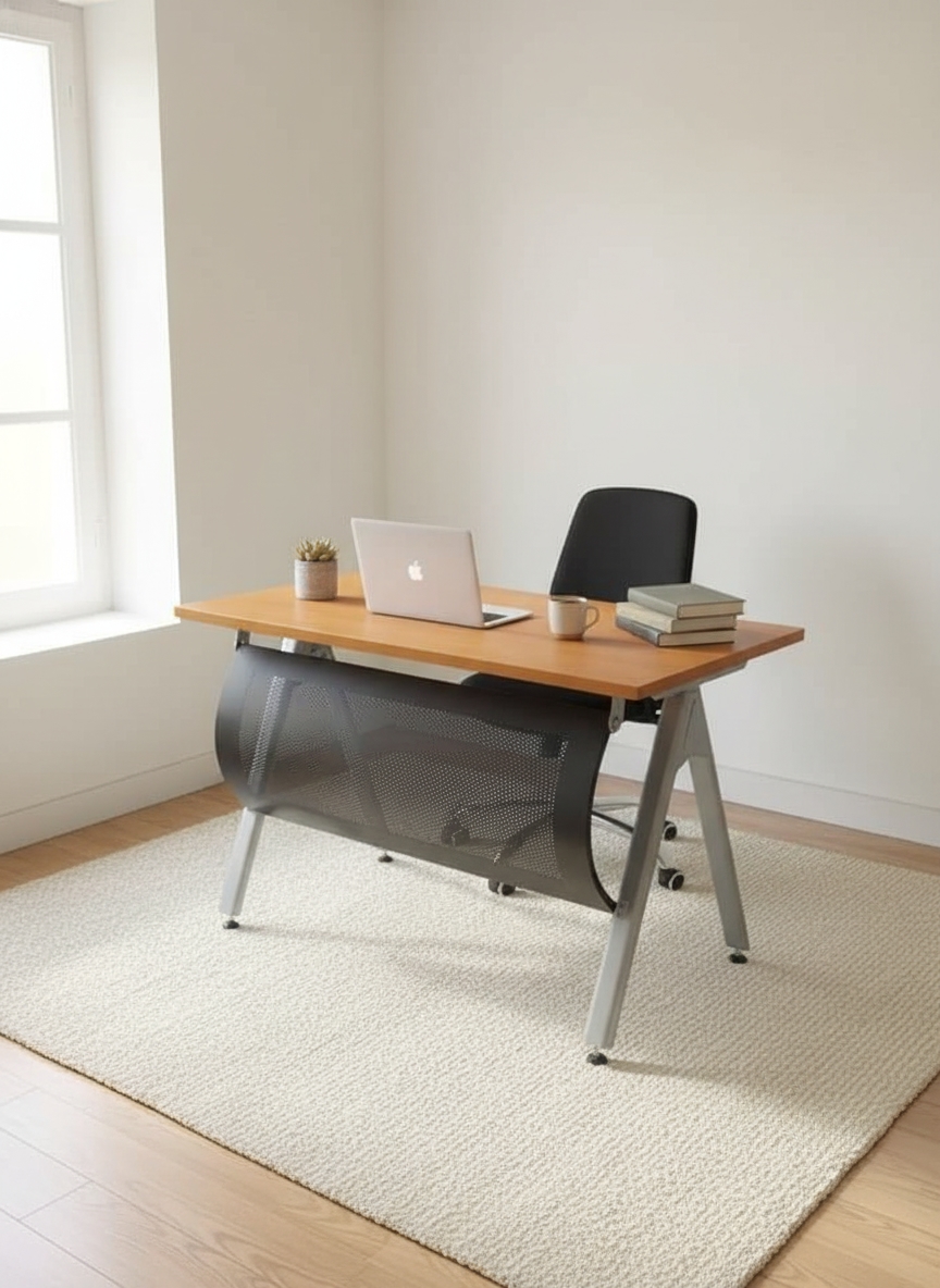 - صُنع هذا المكتب من خشب MDF الفاخر، الذي تم معالجته وتشطيبه ليحاكي أجمل أنواع الخشب الطبيعي كالـ “وِنجي” الداكن أو “الجوز” الدافئ.