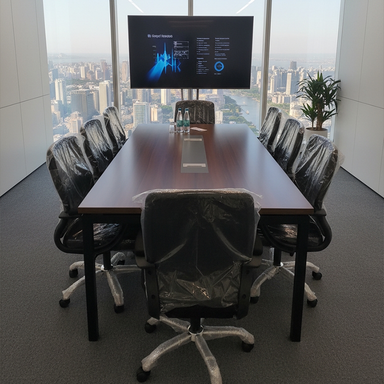 - مساحة رحبة للتعاون: يضمن تصميم الطاولة أنها توفر مساحة كافية وواسعة لكل المشاركين، مما يسهل توزيع الأوراق، فتح الحواسيب المحمولة، ويشجع على التواصل المفتوح والمريح بين أعضاء الفريق.