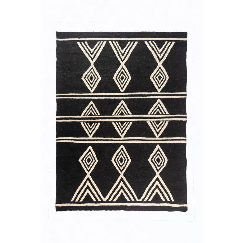 سجادة جويلا صوف وقطن أبيض وأسود – 200 × 150 سم
